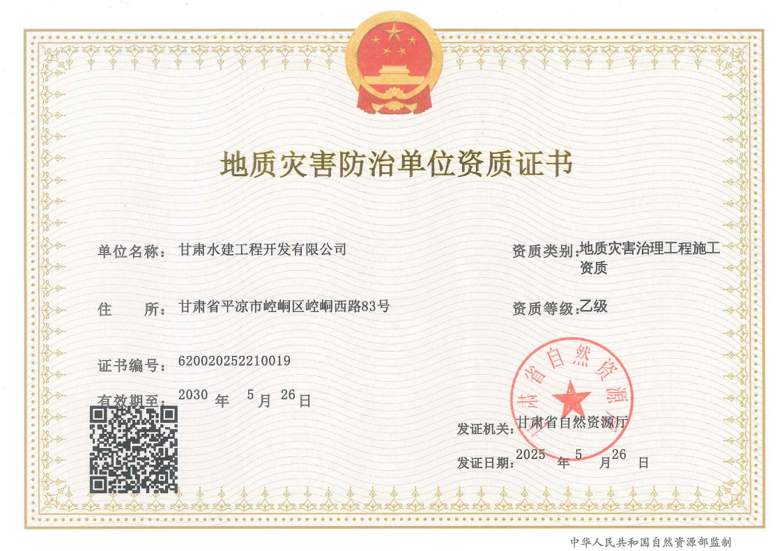 2025-05-28近日,市产投集团水建公司成功获批地质灾害治理工程施工资质!这是继市政、建筑、劳务等资质后,公司在资质建设领域的又一重大突破,标志着公司向综合性工程服务领域迈出坚实一步。水建公司始终践行“诚信立足、服务社会、科学管理、创新致远”的发展战略,近年来,公司